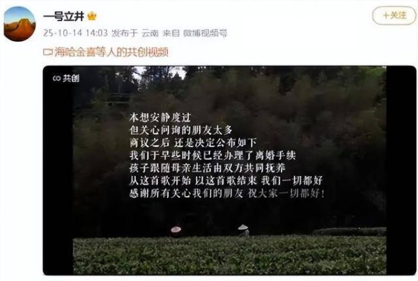 李亚鹏与妻子海哈金喜官宣离婚,孩子跟随母亲生活,由双方抚养