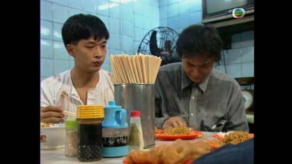 当时刘松仁饰演的方进新被重创导致头部受伤,失去工作能力的他去街头苦苦哀求报纸档老板给一次折报纸的机会。在这个重头戏里,旁边穿着白色汗衣背心、默默注视着一切的报贩正是游飚。