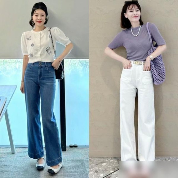 直筒牛仔裤——腿型救星+万能搭子今年直筒牛仔裤直接火上热搜,被称为“反P图利器”!利落的直线剪裁能把O型腿、X型腿都“掰直”,高腰设计从视觉上拉长腿,155的姐妹穿它配老爹鞋,秒变165既视感。搭配更是“懒人福音”:配短T是青春学院风,配针织衫是法式优雅风,上班约会都能穿。