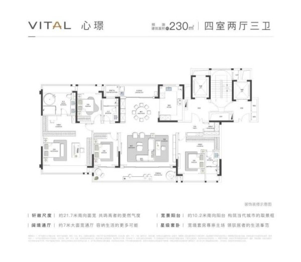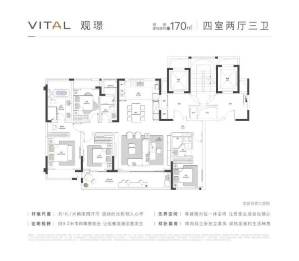 观璟:约170㎡,格局方正,功能分区清晰,是精英家庭的品质之选。