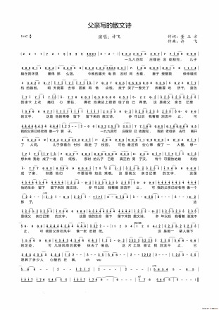 青年诗人董玉方曾根据自己父亲日记里的内容创作了《父亲写的散文诗》的词部分。在他读初中的时候,无意间翻到了父亲的日记本,上面记录着自己童年的一些生活场景。在20世纪90年代,给孩子买块饼干也只能向邻居借钱,可以深深感受到父亲那时的无奈和痛苦。看到了父亲的心声,董玉方既震撼又感动,于是将这本日记整理发表。许飞读后,被字里行间的真情打动,经过多次打磨,最终将这些内容谱成了曲 [18]。该曲曾在综艺节目《诗歌之王》中现场演绎过,于节目现场演绎后,引得现场观众和网友泫然泪下。而一直对该曲念念不忘的许飞,则借着父亲节之机将之重新编曲录音,于2016年6月17日正式推出 [2] [10]。