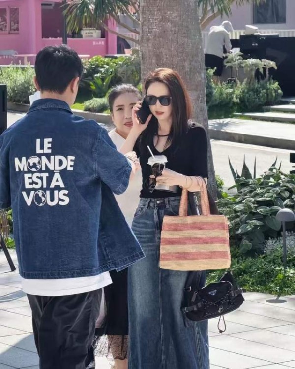董璇长发披肩戴着红色棒球帽,身穿一件白色毛衣,化着精致妆容,人漂亮气质又好。张维伊则是白T配黑裤,像和董璇穿了情侣装一样。