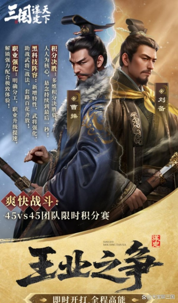 除了这些减负降氪的贴心设计,《三国:谋定天下》还带来了近期刚开启全面测试、未来将在全问鼎赛季上线的全新45V45创新玩法“王业之争”,为喜欢策略博弈的玩家带来了完全不同于传统SLG的对战体验。
