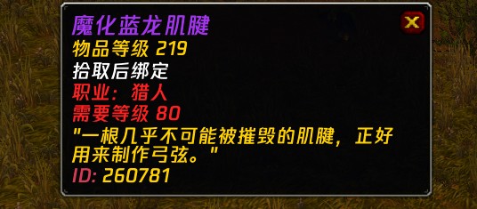 玩家拿到之后不需要做任务,而只需要和蓝龙艾索雷葛斯掉落的【魔化蓝龙肌腱】组合,就可以获得两把219的强力武器——【伦鲁迪洛尔,上古守护者的长弓】和【罗克迪洛尔,上古守护者的手杖】。