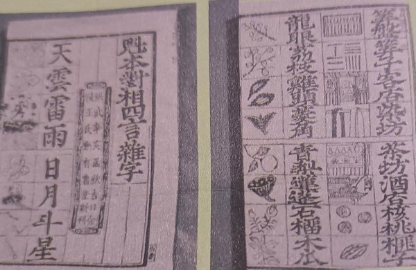 至今最早出现算盘图的儿童读物为明初期 (1371年) 刊印的《魁本对相四言杂字》。这是一本看图识字的儿童读物,四字一句,图文对照,书中刊有一幅算盘图,图上画的是梁上二珠、梁下五珠的十档算盘。在儿童看图识字的读物中绘有算盘图,这说明算盘在明初是民间通行的算具,而不是陌生的新事物。