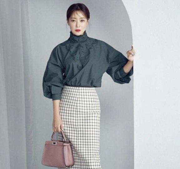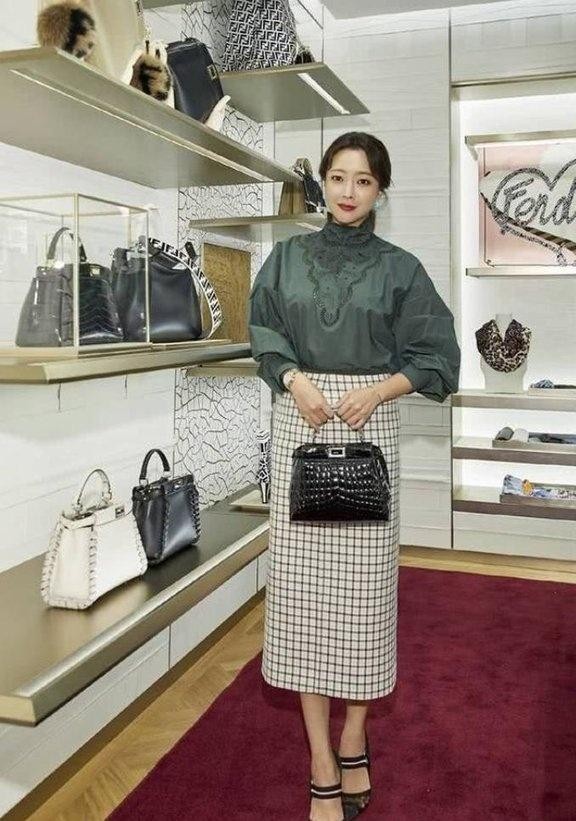 金喜善带火一种潮流:叫“衬衫+格纹裙”,肚腩大屁股都被藏起来