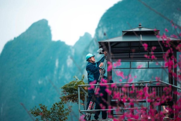 网络工程师安装智慧摄像头开展慢直播带领网友云游河池山水。林峰摄