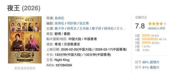 上映8天刚破亿!《夜王》排片逐渐提升,黄子华号召力依旧