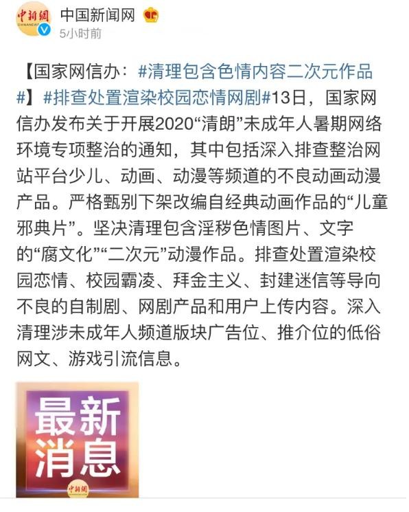就像今年暑假时,网上流传起了一张截图,那里面说之后即将重点审查二次元动漫的内容,