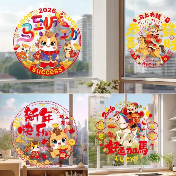金马送福系列将生肖马与福字创意结合,线条流畅优雅,金色与红色的搭配既喜庆又不落俗套。每套包含5款不同设计,可以随心搭配,让家门口成为邻里羡慕的焦点。静电吸附设计让更换变得轻而易举,春节期间每天都能有新气象。