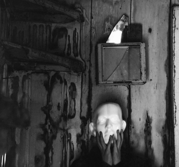 无题,1962。1961年,米雅德突发心脏病。经历了这场与生死的擦肩而过后,他给自己十年时间来精通摄影。他的许多照片中都流露出焦虑感。这张戴着面具、双手按在脸颊上、破碎镜片漂浮在上方的画面,体现了时间带来的压力和人的脆弱。拉尔夫·尤金·米雅德作品