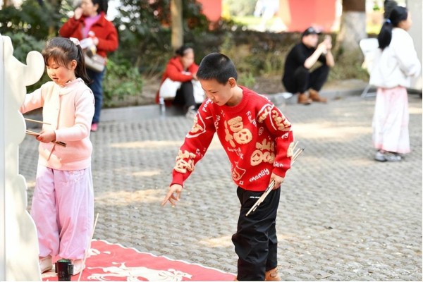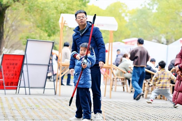 大年初一启动的“龙马精神”非遗运动会,通过射艺、蹴鞠、木射、投壶四大传统体育挑战区,吸引了众多亲子家庭参与。活动现场人头攒动,家长与孩子共同体验传统体育项目,在欢声笑语中传递着“龙马精神”的美好寓意。