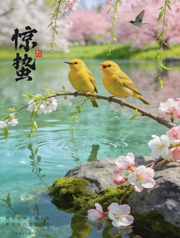 老祖宗还把惊蛰分成了三候,把时节变化说得活灵活现:一候桃始华,桃花次第开放,春天的颜色先亮起来;二候仓庚鸣,黄鹂鸟开始放声歌唱,春天的声音响起来;三候鹰化为鸠,老鹰悄悄躲起来繁育,斑鸠等鸟儿频繁出现,春天的生机动起来。这三候不是玄乎的说法,就是对自然物候的真实记录,一眼就能看出惊蛰时节“万物复苏、天地回暖”的特点。