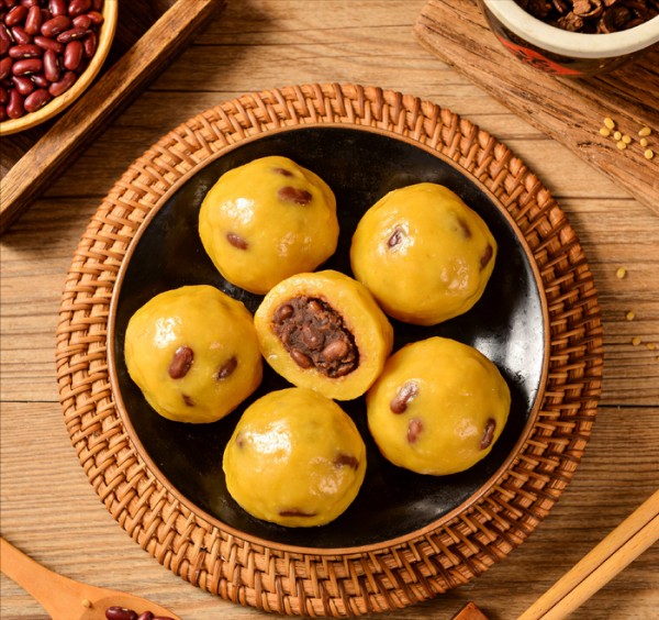 北方黏豆包的制作颇为讲究,外皮选用颗粒饱满的大黄米或糯米,提前浸泡后磨成粉,发酵后揉成光滑的面团,口感自带软糯的韧性。内馅则是精心熬煮的红豆沙或芸豆泥,甜而不腻,带着豆子本身的清香。民间常说“黏食黏福气”,十月二十六吃黏豆包,便是希望这份软糯能“黏住”一年的好运气。加热后的黏豆包口感温热软糯,咬一口下去,外皮的绵密与内馅的香甜交融,既能暖胃驱寒,适配寒冷的天气,也能带来满满的幸福感。部分家庭还会将精心制作的黏豆包作为祭祀供品,以此祈求来年五谷丰登,生活过得像豆馅一样甜蜜。