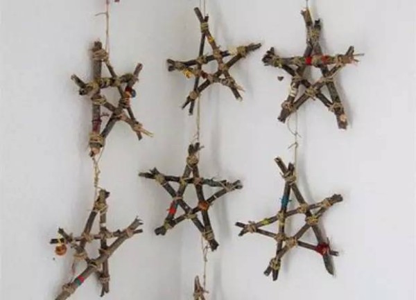 CRAFTY CUE: Make several twig stars of different sizes, attach string to each and hang them at varying lengths from a sturdy stick. You have yourself a twig star mobile!小提示:做出几个不同大小的树枝星星,在每个星星上绑一根线,将它们不同长度的悬挂到一根结实的木棍上。你就做成了一个可以移动的树枝星星了!本文由百度翻译&智客联盟联合独家翻译出品。译者: 24号 校对:Tina 编辑:Tina文章来源: goodnet