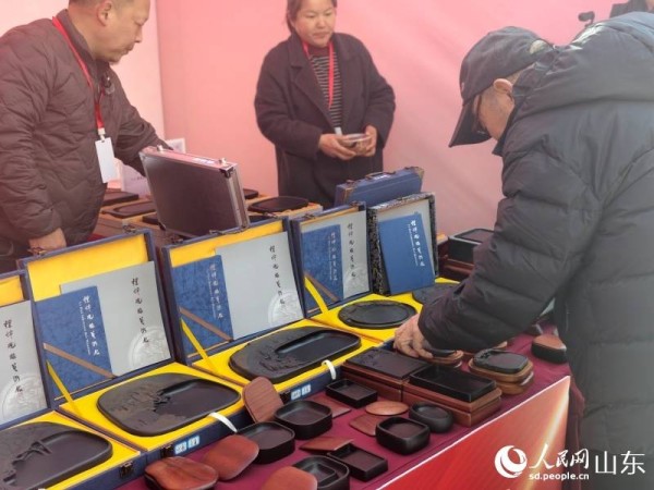 游客现场感受歙砚的雅致韵味。人民网记者 刘颖婕摄