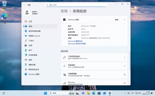 安装后系统信息如图,版本号 26200.7171 (25H2)