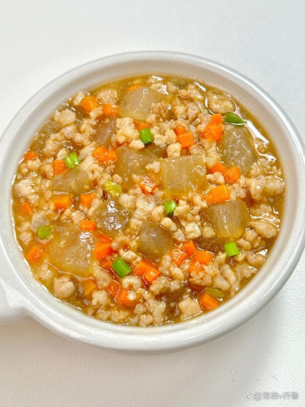 材料:冬瓜 500克、猪肉末 150克、姜蒜末 适量、生抽 1大勺、料酒 1大勺、盐 适量、白胡椒粉 适量、香葱 适量、食用油 适量、水淀粉 适量(可选)