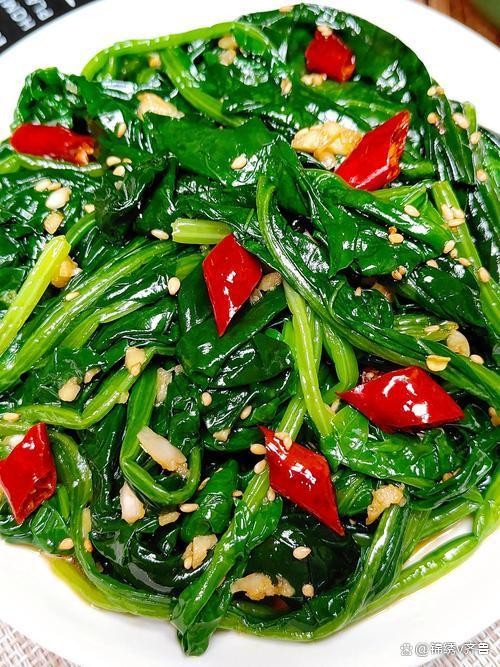 5. 拌菠菜:将焯水后的菠菜捞出,轻轻挤干水分。放入大碗中,加入蒜末。
