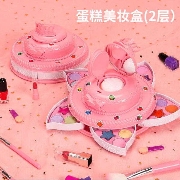 双层旋转蛋糕造型的美妆盒,一打开就能吸引孩子的目光。粉色调搭配闪亮装饰,完美满足小女孩对"大人世界"的好奇与向往。旋转设计不仅有趣,还能培养孩子的动手能力。