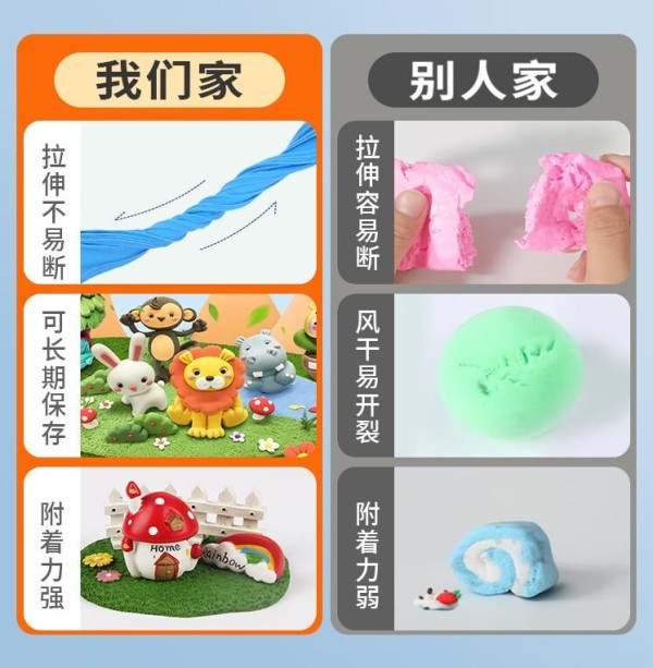 孩子玩粘土就怕不安全,这罗弗超轻粘土可太让人放心了。0硼砂0重金属,经过99+国际安全检测,各种认证都有,像欧盟EN71 - 3检测都不含硼砂、汞、铅等重金属元素。而且这粘土玩起来体验也好,拉伸性比传统无硼粘土好,手感细腻还不油腻,也没有异味,更不会掉色。还送粘土工具套装、教程书和视频教程,性价比超高。