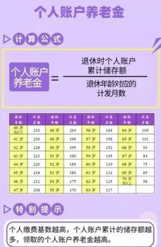 个人账户养老金按其缴费年限乘以相应的缴费月份来计算。每个月缴纳的保费越多,那么,个人帐户中所存的钱就越多,退休金也就越高。