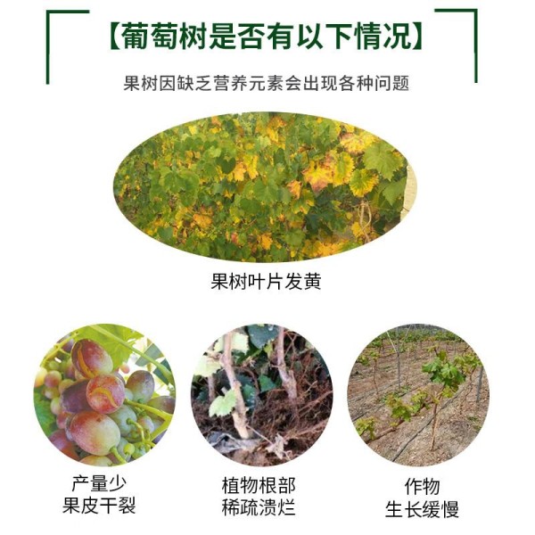 2500克大桶装适合多株葡萄树或多年使用。春季萌芽前和秋季采果后各施一次,就能满足葡萄树全年大部分营养需求。使用时沿树冠投影范围均匀撒施后浅埋,效果更佳。