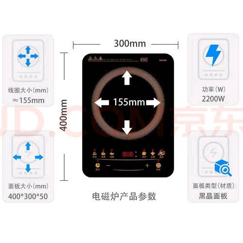 高性价比:适合新手及专业厨师,满足多种烹饪需求。 便捷生活:数显操作大面板,简单易用。 稳定性能:2200W大功率,确保平稳、快速的加热体验。 这款电磁炉运用防辐射技术,保护家人的健康。