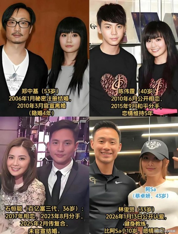 在郑中基之后,阿Sa又接连交往过几位男友,网友也总结了一下,其中每一段恋情都维持了有好几年时间,只是最终没能走向圆满。