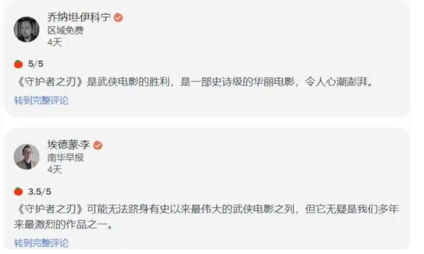 “《镖人》是史诗级的华丽电影,让人心潮澎湃。”