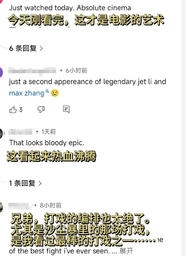 再回到《镖人》,电影在大年初一的时候不仅登陆到中国市场,还成功出海,不管票房如何,能够得到广泛的讨论,对于传播中华文化都是很有意义的。