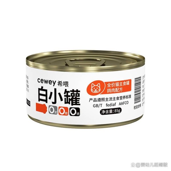 cewey希喂鸽肉罐头肉类来源明确,选择沂蒙山区的符合HACCP标准的人食级肉源,肉类占比格外清晰,多肉混合营养均衡,原料占比高达96%,微创新的X-simmer™ 真空低温煨煮工艺,锁鲜率比传统的高温蒸煮工艺提高80%以上。采用无菌无尘的GMP标准车间,与婴儿奶粉、制药的生产级别一致,不添加任何谷物、植物蛋白、水果蔬菜和淀粉成分,也没有任何添加剂、色素、非天然防腐剂,保证罐头原材料新鲜以及安全性。