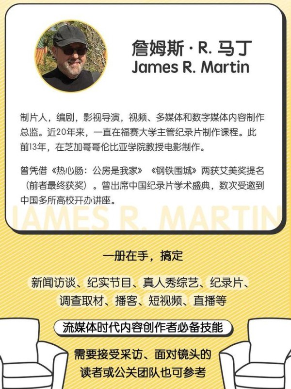 一手案例,字字干货,淬炼近40年纪录片领域实战与教学经验。一册在手,搞定新闻访谈、纪实节目、真人秀综艺、纪录片、调查取材、播客、短视频、直播等流媒体时代内容创作者必备技能,需要接受采访、面对镜头的读者或公关团队也可参考。