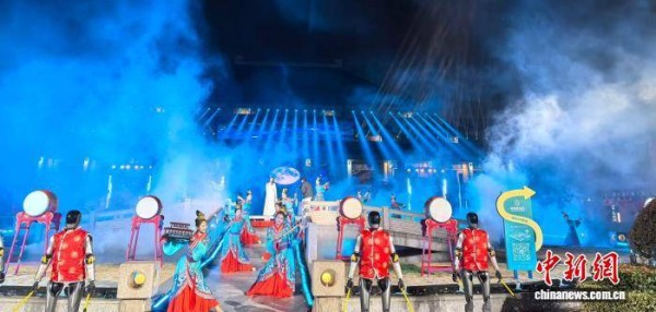 “钟鸣楚天元宵夜”主题灯会,鼓手与人形机器人同台击鼓。黄敏 摄