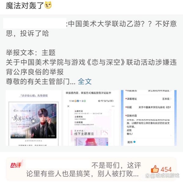 当你以为事情就这么结束了的话就错了,乙游《恋与深空》联动遭大规模举报,一场“魔法对轰”的大戏就此拉开序幕。玩家们纷纷表示,既然你能举报我,那我也能举报你!于是,目标转向了另一款乙游《恋与深空》。这款游戏最近也搞了个联动,和中国美院合作,看起来也是挺高大上的。但尘白玩家们可不这么认为,他们觉得,你乙游也有擦边内容,凭什么你能联动,我就不能?