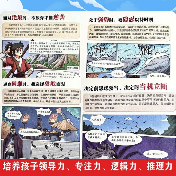 《狼之道》漫画用动物寓言解构现实困境。每册书末的「强者思维训练营」,把丛林法则转化为孩子能理解的生存技能。