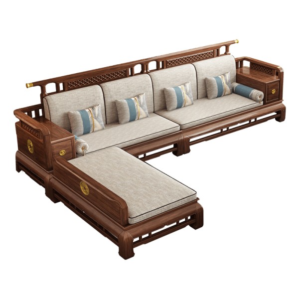 产品介绍:木优庭的新中式实木沙发采用黑胡桃木材质,展现出浓厚的中式风格。其尺寸为272cm x 204cm x 80cm,适合多种户型,既可作为客厅的主打家具,也可作为书房的点缀。实木框架确保了沙发的耐用性与稳定性,豪华的装饰让其在视觉上更具吸引力。
