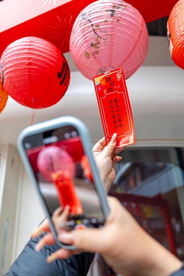 一串串红灯笼下悬挂的趣味灯谜,吸引着往来顾客驻足竞猜。作为市民身边的邻里商业空间,如意坊将这一传统民俗融入消费场景。大家或凝神思考,或热烈讨论,猜中谜底的喜悦与收获礼品的满足交织在一起,为传统佳节增添了别样的互动乐趣。