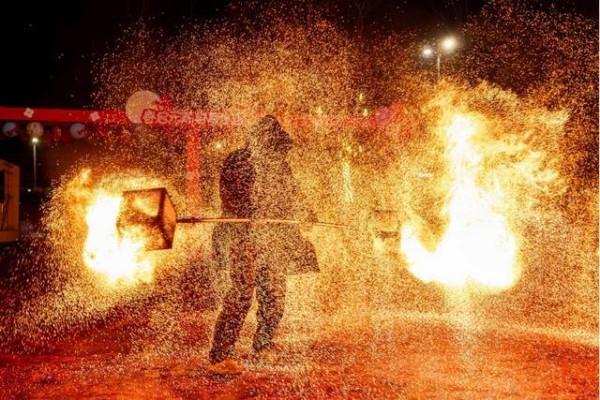 真正的全场高潮,当属随后上演的火壶和火棍等非遗表演。民间艺人身着特殊服饰在夜色中挥舞起火壶、火棍等。刹那间,绚丽的火光如流星般划破夜空,形成“火树银花不夜天”的壮观景象。