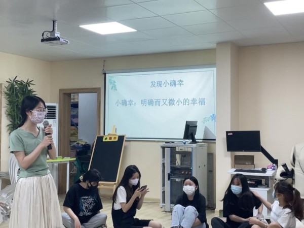 陆老师通过对小确幸的解释与举例,让同学们发现自己发生在自己生活中的小确幸,在团队内交流分享,同学们分享的小确幸有“起床后,吃到室友打的饭”、“520和同学一起开心度过”、“上公交车有位置坐”、“网购的衣服很合身”、“参加团辅队友们很好相处”、“意外收到花”……再分享与交流中感受生活中无处不在的小确幸,体会简单的幸福。陆老师总结到其实幸福就在我们身边,我们需要用心去感悟。