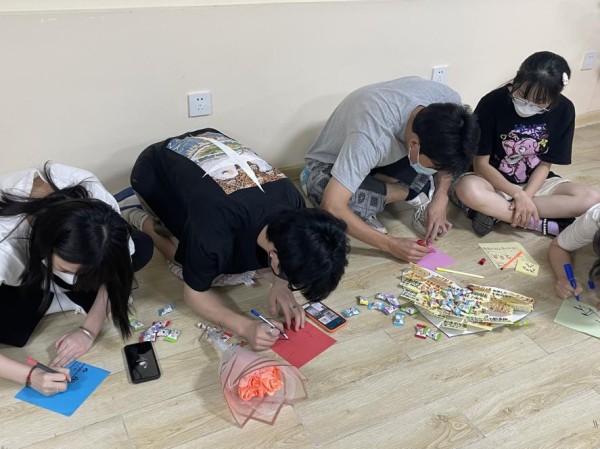 幸福是可以相互感染与传递的,在同学们获得满满的幸福感后,陆老师请同学们思考并以绘画的形式画出自己将为他人制造小确幸的行动,同学们分享了计划传递幸福的行动有“下雨天送没有带伞的同学回宿舍”、“倾听同学们的烦恼”、“给家人打电话”“一起看日落”、“给室友打饭”......接着,陆老师为同学们分发准备的小确幸(糖果),祝愿同学们爱己爱人,鼓励同学们去行动落实,以自己微小的行动将幸福与爱传递给身边的人,温暖他人。