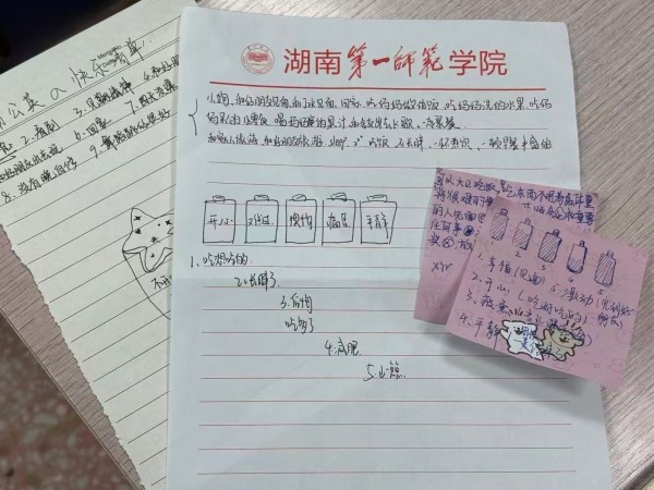 活动以阶梯式设计搭建情绪成长阶梯,通过多环节互动体验层层深化情绪认知:“进化论”融冰游戏——在趣味猜拳中打破隔阂,让活动氛围迅速升温;“情绪ABC理论”认知训练——通过案例解析与理念讲解,揭秘情绪背后的认知密码;“快乐清单+情绪小瓶子”创作分享——在书写与绘画中觉察情绪、挖掘快乐,深化自我认知;“自主放松训练”——以身心调节法,帮助学生掌握情绪舒缓的实用技巧。
