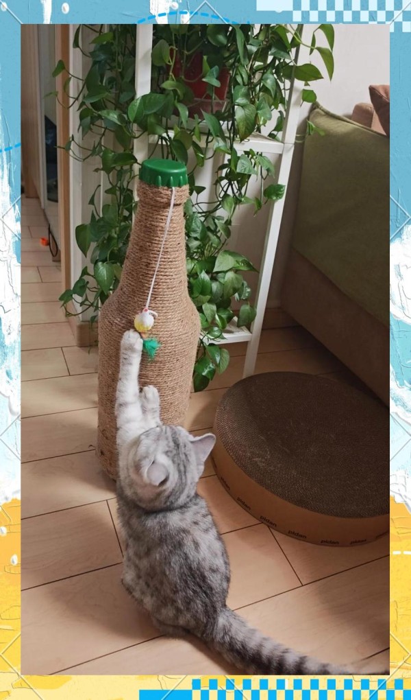 立于猫窝旁或沙发角,主子秒变“啤酒罐”狩猎靶。