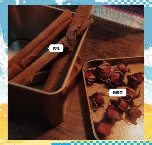 肉桂条、干玫瑰、干燥橙皮各一小把