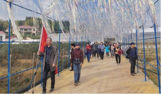 徒步协会60余名会员在农场讲解员的带领讲解下,漫步在市级乡村振兴主题党日活动基地“鲜果小镇”的小路上,参观并了解了鲜果小镇的创办发展、运营模式及现状。大家走在105亩的醉美蓝莓园、100亩的奇美百果园、400亩的秀美柑橘园里和着温暖的阳光,尽情享受着冬日的田园风光。