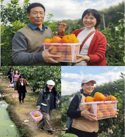 在柑橘园,硕果累累的红美人柑橘正是丰收的季节,大家都兴奋不已,纷纷拿起篮子、剪刀体验一把采摘的乐趣。大家边采摘边品尝新鲜的柑橘,不时发出阵阵欢声笑语,那种轻松愉快的心情溢于言表。