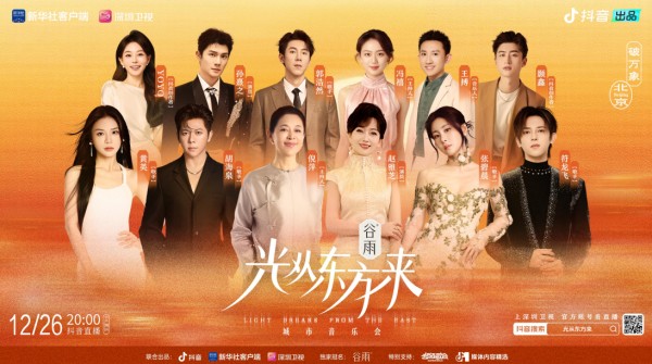 “光从东方来·破万象篇”城市音乐会将于12月26日盛大启幕,恰如划破寒冬的第一缕光,为岁末注入文化暖意。整场晚会分为“源?光启山海”“融?寻光而生”“绽?与光同行”“破·光华如梦”四个层层递进的篇章。 本场音乐会的嘉宾阵容堪称跨世代强强联合,既有赵雅芝、倪萍、胡海泉等国民度拉满、自带时代记忆点的熟面孔,更汇聚张碧晨、黄英等实力唱将。深耕各垂类领域的抖音头部达人也将惊喜亮相。跨世代阵容同台,“非遗”撞上潮文化,怀旧杀与流行梗齐飞……观众将收获何种视听新体验?悬念感拉满。