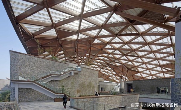 商业空间中最常见的创造自然风貌的方式是将自然景观直接引入休闲区域等公共活动空间。另外,我们可以尝试将布料、亚克力、金属或新兴人造材料做成各类生态造型来模拟自然环境,既环保又能够给单调的空间增添生机和活力。