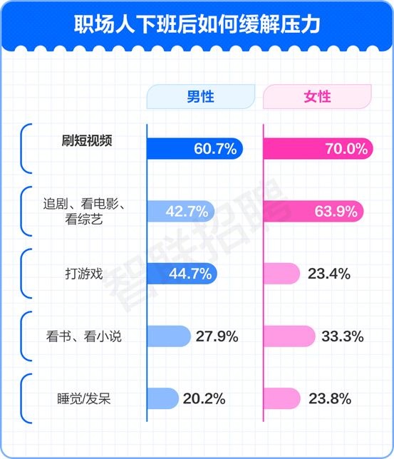 超6成职场人下班“刷短视频”解压,男性更喜欢下班打游戏