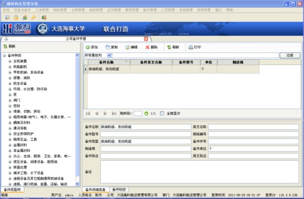 由于我港的装卸机械种类、型号很多,所以为之储备的库存物资种类繁多,对全部物资进行管理是一项复杂而繁重的工作。运用计算机信息管理系统,对备件的计划、审批、入库、出库以及库存进行管理,可以大大提高备件物资的管理水平,使设备消耗得到有效控制。通过计算机这一现代化手段对备件消耗情况进行统计分析,依据备件的采购成本、保管成本等特征,科学地设定合理库存和订货批量,开发备件定货点警告功能,解决备件积压和缺货等问题,从而达到控制库存总成本和控制备件的支出成本的目的。